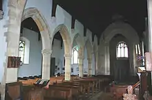 The Church of England parish church of Saint Mary the Virgin had been built by 1190, by which time it had been given to Osney Abbey.[2] Little of the original building is recognisable except the Norman font.[3] The south aisle was added in the 14th century.[3] Its surviving original features include the south porch and five-bay arcade, both of which are Decorated Gothic.[3] The Perpendicular Gothic[3] west tower was added in the 15th century.[2] The chancel was rebuilt and the nave and south aisle drastically restored in 1850–51 under the direction of the Gothic Revival architect J.C. Buckler.[2][3]