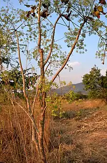 Steganotaenia araliacea is a species of flowering plant in the family Apiaceae. It is found in Angola, Benin, Botswana, Cameroon,[1] Democratic Republic of Congo, Ethiopia, Kenya, Mozambique, Namibia, Somalia, South Africa, Sudan, Tanzania, Togo, Uganda, Zambia, Zimbabwe.[2]