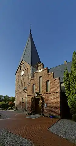 Steinbergkirche (Danish: Stenbjergkirke) is a municipality in the district of Schleswig-Flensburg, in Schleswig-Holstein, Germany. It is situated near the Baltic Sea coast, approx. 30 km (19 mi) northeast of Schleswig, and 22 km (14 mi) east of Flensburg.