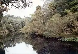 The Steinhatchee River is a short river in the Big Bend region of Florida in the United States. The river rises in the Mallory Swamp just south of Mayo in Lafayette County and flows for 34.5 miles (55.5 km)[1] out of Lafayette County, forming the boundary between Dixie County and Taylor County to the Gulf of Mexico. It has a drainage basin of 586 square miles (1,520 km2). The river has also been known as the Hittenhatchee, Esteenhatchee and Isteenhatchee.