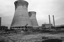 By the mid-1980s closure of the stations was being considered, and in 1984, was considered for a combined heat and power scheme.[72] After the privatisation of the Central Electricity Generating Board in 1989, the stations passed into the ownership of National Power.[73] After almost 37 years of use they were decommissioned in May 1991 as outdated and uneconomical to operate.[71][74] They had been overtaken technologically, and had lower generating capacity than newer plants such as Drax. Their closure coincided with that of a large number of coal mines in the North East of England, just after the privatisation of both the electricity industry and the National Coal Board in the early 1990s.[49][75][76]