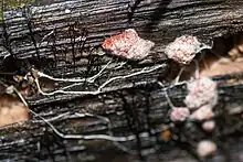 The Stephanosporaceae are a family of fungi in the order Agaricales. Species in the family are gasteroid or corticioid, growing on the ground or on rotting wood or plant debris.[1][2]