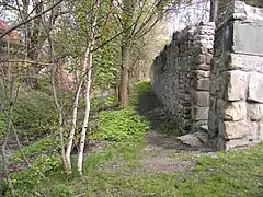 - In the west, a part of the moat and the old wall with firing slits is preserved. In the second half of the 18th century, a large half-timbered store house was built outside the castle; this is to be renovated.