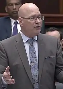 He was first elected as the MPP for Leeds–Grenville in a by-election on March 4, 2010, held to replace Bob Runciman who resigned to accept a position in the Canadian Senate.[4] He was easily re-elected in 2011 and in 2014 both with large pluralities.[7][8] In 2018, he was elected as the MPP for the riding of Leeds–Grenville–Thousands Islands and Rideau Lakes. In 2018, he was appointed as the Minister of Municipal Affairs and Housing by Premier Doug Ford. He resigned this position on September 4, 2023.