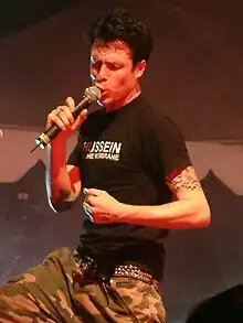 ![]() Jocz singing "Pain for Pleasure" in 2003. | |