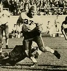 He played running back as a member of the varsity football team at Duke University.[6] As a senior, he was a wingback, which allowed his team to take advantage of his fine blocking ability. His playing weight was 190 pounds.[7]