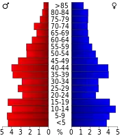 In the county, the population was spread out, with 31.20% under the age of 18, 8.30% from 18 to 24, 27.80% from 25 to 44, 19.40% from 45 to 64, and 13.30% who were 65 years of age or older. The median age was 34 years. For every 100 females there were 95.30 males. For every 100 females age 18 and over, there were 92.50 males.