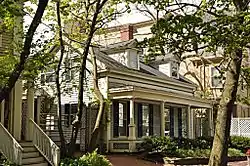 The Stickney-Shepard House is an historic house at 11-13 Remington Street in Cambridge, Massachusetts. The 1+12-story Greek Revival double house was built 1846-47 by N. Stickney and S. P. Shepard, and is a well-preserved example of the form. It has a heavy cornice, with corner pilasters, and a full-width front porch supported by plain columns on the corners, and fluted Doric columns in the center. The house was built on land originally part of the estate of Francis Dana, which was subdivided and developed in that time.[2]