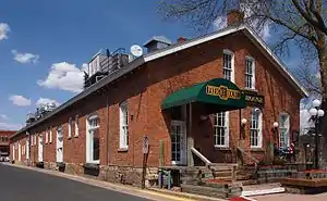 The Chicago, Milwaukee and St. Paul Freight House is a historic former railway station in Stillwater, Minnesota, United States, built in 1883 as a passenger and freight depot for the Chicago, Milwaukee and St. Paul Railway (better known as the Milwaukee Road). It was listed on the National Register of Historic Places in 1977 for having local significance in the themes of commerce, communications, engineering, and transportation.[2] Its notability derives in part from its long service to Stillwater; nearly all goods shipped to and from the city passed through this station, and up to the 1920s it hosted critical telegraph and Railway Express Agency offices. The building is also noted as a somewhat rare example of a combination freight and passenger station, and for the engineering of its internal wood construction.[3] It is also a contributing property to the Stillwater Commercial Historic District.[4] The station closed in 1970 and now houses the Freight House Restaurant.[5]