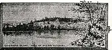 In August 1883, Hutchins had leased Governor's Island, on Lake Winnipesaukee in Gilford, New Hampshire, from Isaiah Morrill of Gilford, for $1,000 per year for 99 years, "with the privilege of purchasing the island within twenty years for the sum of $20,000". The arrangement took effect January 1, 1884. Hutchins built a mansion on the island in 1885.[6] In 1903, he leased the mansion to the Ambassador from Germany, Baron Speck von Sternburg, who established a summer embassy there with a retinue of at least 20 persons. The Baron later wrote that the view from the mansion was as magnificent as anything in Switzerland or Bavaria, and that the advertising which he gave the region caused the sale of other summer property. The mansion was sold by the Hutchins family in the late 1920s and burned down on August 1, 1935. While the mansion was once the only one on the island, now there are scores of large private homes.