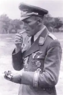![]() Stjepan Horvat wearing the Iron Cross and the Honour Roll Clasp as an Air Force lieutenant in Zagreb, 1942[1] | |