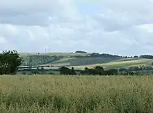 Stock was part of the Calne hundred, and its history is included in the parish history of Calne in the Wiltshire Victoria County History's Volume XVII (2002). Although Stock had open fields and common pastures, it did not have a nuclear settlement. Before the Norman Conquest of England and still in 1086 the land at Stock was almost certainly part of the royal estate of Calne. Land at Stockley lies to the south, and the boundary between Stock and Stockley is uncertain.[1] Land at Stock had been granted away from Calne by 1144, although the area it then covered is unknown. Some of it was probably granted to Fulk de Cauntelo about 1199, and from 1763 on Stock was inherited with the manors of Calne and Calstone as part of the Bowood House estate. In 1728 Stock was divided between Hollow Ditch farm (now called Holly Ditch) and a farm now gone, with buildings near Quobbs Farm, on the west side of the road from Devizes to Calne (now the A3102). As part of the Bowood estate, the land of those two farms, and other land at Stock, totalling about 350 acres, was inherited by Charles Petty-Fitzmaurice, 9th Marquess of Lansdowne, in 1999.[3]