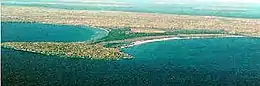 The largest island included in the national lakeshore, it is host to numerous trails and campsites. The island is known for its unique lagoon ecosystem with multiple carnivorous plants and low bush blueberries, as well as the singing sand found in Julian Bay.[2] Stockton Island also has one of the highest concentration of black bears in North America,[3] with a 2002 study finding 26 bears on the island (0.64 bears/km2).[4] The Trout Point Logging Camp is located on the island.