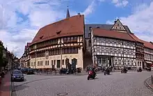 Nevertheless, the consistory continued to have regional responsibility for the Lutheran church parishes in the former county. Until the separation of church and state in 1919 it was directly subordinate to the imperial lord (Standesherr), the Count or Prince of Stolberg-Stolberg and indirectly to the governor (Oberpräsident) of the Province of Saxony.[1] At the end of 1944 the Evangelical High Consistory (Evangelischer Oberkirchenrat) (the headquarters of the state church) moved its seat from the endangered city of Berlin to the consistorial building at Stolberg.
