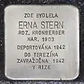 HERE LIVED ERNA STERN NÉE KRONBERGER BORN 1903 DEPORTED 1942 TO THERESIENSTADT MURDERED 1942 IN RIGA |