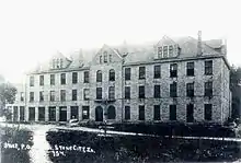 Stone City was founded in 1850 along the banks of the Wapsipinicon River. Early settlers discovered dolomite and limestone at the location.[2] In its earliest history Stone City was known as the Anamosa Quarries. Later the area became known as the Stone City Quarries.[3] In the late 1800s, Henry Dearborn, John Green, and John Ronen each opened limestone quarries in the area.[4][5] As the railroad system expanded westward, distribution of limestone to bordering states increased. Stone City limestone became the primary building material for railroad bridges, bridge piers, and foundations for major buildings.[6] Each year, between the years 1859 to 1895, over 150,000 railroad car shipments of limestone were sent from Stone City.[7]