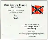The Association hired Augustus H. Lukeman as replacement sculptor;[39] all of Borglum's work was eventually blasted away.[40] Despite the dispute with Borglum, the Association proceeded to market the half dollars; it hired New York publicist Harvey Hill to run the campaign.[16] The Association hoped for the opportunity to present the first coin to President Coolidge in person as a means of overcoming the bad publicity; White House officials warily declined, writing that "no good purpose would be served by a formal presentation".[41] The half dollars were officially released on July 3, 1925 (though some were displayed as early as May);[22] they were sold at a price of one dollar.[16] They were sent to 3,000 banks by the Federal Reserve, with the proceeds from sales credited to the Association.[32] White Southerners applauded the piece as symbolizing sectional reconciliation, the federal government paying homage to the South's Confederate heritage.[42]