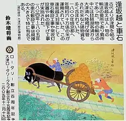 A stone route was typically 2.7 meters (9 shaku) wide, with the two rows of stones of 30 cm x 60 cm × 25 cm size on both sides and a 90 cm (3 shaku) wide center for the bulls to walk. When the railways were introduced in the 19th century, the vehicle stone were dismantled and used for other purposes and, therefore, they came to mean the stone routes.