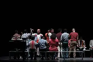 Previous NYCO Pride Initiative productions have been 2018's American composer Charles Wuorinen's Brokeback Mountain based on Annie Proulx's 1997 short story "Brokeback Mountain", and 2017's Hungarian composer Péter Eötvös's Angels in America, an adaptation of Tony Kushner's play.[6] Although NYCO has been active since 1943, it was revived in 2016 after a 2013 bankruptcy after which the Pride Initiative started.[7] Stonewall is the first commissioned work of the revived NYCO.[8] NYCO has faced fundraising challenges because of the bankruptcy but is hoping Stonewall will help revive finances.[9]