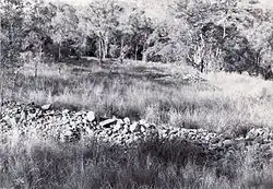 The township and cemetery occupy a cleared flat on a horseshoe bend of Stony Creek. A haulage road has recently been driven through the centre of the township to a large area of surface workings that scour the hillside to the north-west of the creek. Evidence of structures in Stony Creek township is now largely archaeological and includes stone surfaces, rock-lined borders and stone cooking places in scattered and disturbed condition. There are two small groups of mango trees.[1]