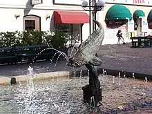 Klaipeda square is located north of the square with the fountain "Stora fisken" (Swedish: "The Great Fish"). The square is popularly known simply as "the Fish". The shopping and pedestrian Ronnyebygatan street extends east and west. East of Klaipedaplatsen on the north west side of the square is Bankhuset and Hotell Statt.