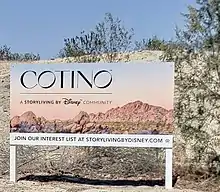 Storyliving by Disney is a business venture and brand of The Walt Disney Company announced on February 16, 2022, to collaboratively develop master-planned communities that utilize Disney Imagineering and are staffed by Disney cast members.[1] It operates under the company's Disney Living Development, Inc. subsidiary. Cotino, in Rancho Mirage, California, was the first Storyliving by Disney community chosen for development, where ground breaking took place in April 2022.[2] In December 2023, plans were announced for a second such community, named Asteria, in Pittsboro, North Carolina.[3]