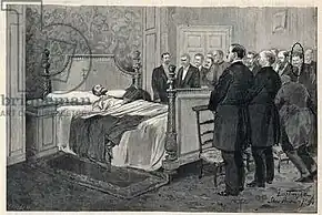 In 1843 there were several visits by German royalty, with the British-born King Ernest Augustus of Hanover and his wife, Frederica of Mecklenburg-Strelitz, staying at the house. Later that year, both Crown Prince Johann of Saxony and Crown Prince Wilhelm of Prussia (later the first German Kaiser) would stay at Stowe. Queen Victoria and Prince Albert stayed at the house for several days in 1845. Due to financial problems, the family let the estate to the Comte de Paris from 1889 to 1894. The Comte died that year in the house; his body was laid in state in the Marble Saloon, during which period The Prince Albert Edward, Prince of Wales (the future King Edward VII), paid his respects.
