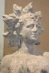 The State Music Room, to the east of The Marble Saloon, is approximately 30 by 40 feet (12 m), probably designed by Valdrè and finished in the early 1780s. With an apse in the centre of the north wall, there are doors at each end of the side walls, though only the northern pair are real, the other two are false doors. The north has within the apse two sets of doors flanking a niche that is surrounded by a decorative frame. There are two un-fluted scagliola Corinthian columns on the corners of the apse and also within it flanking the niche. The walls are painted with panels in the form of Grotesques and Arabesques. The chimneypiece in the centre of the east wall is of white marble inset with panels of rosso antico marble and with carved decoration of musical instruments in white marble and ormolu. This chimneypiece was sold in 1922 but bought back in 1991, and a new mirror above the chimneypiece was made to replace the original one. The plaster ceiling has gilt moulded decoration and seven inset paintings. The central painting is circular and is of The Dance of the Hours after Guido Reni, and is flanked to the north and south by two rectangular paintings of the four seasons. Between these large paintings are four smaller ones of landscape scenes. All the paintings are believed to be by Valdrè. The central chandelier is a recreation of 2012 of the one sold in 1848. The ancient Roman sculpture the Marine Venus, that used to stand in the niche, was purchased by Queen Victoria at the 1848 sale and is now at Osborne House. This has been replaced in the niche by a bust of William Pitt the Elder by Joseph Wilton, which is on loan to the house. There is mention of a chamber organ in the room in 1779. Also sold in 1848 were two Italian neo-classical side tables with Verd antique tops, the frames being carved with plaques of Leda and the Swan and Juno and her peacock; these are both now in the Wallace Collection.[15]