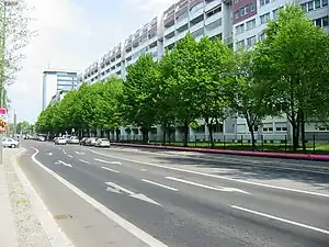 North of the Ostbahnhof, it is almost entirely lined with communist-era apartment buildings, though some older buildings have been preserved at the intersection with the Karl-Marx-Allee. One may also find along it the Pegasus youth hostel, the DDR-style Ostel, the offices of the Neues Deutschland publishing house, and some clubs and shops.