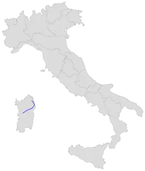 This freeway is connected to the Strada statale 131 Charles Felix, it links Abbasanta (a village near Oristano) with Olbia, via Nuoro, crossing the hinterland mountainous regions of the island. It has a length of 148 km.
