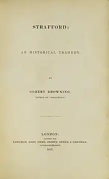 Strafford is an 1837 tragedy by the British writer Robert Browning.[1] It portrays the downfall and execution of Lord Strafford, the advisor to Charles I shortly before the English Civil War.