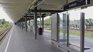 Strandvliet is an Amsterdam Metro station in the Venserpolder area of Amsterdam, Netherlands. The station opened in 1977 and is served by 2 lines, the 50 (Isolatorweg - Gein) and 54 (Amsterdam Centraal - Gein).