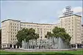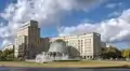 The Strausberger Platz is a large urban square in the Berlin district of Friedrichshain-Kreuzberg and marks the border to the district of Mitte. It is connected via Karl-Marx-Allee with Alexanderplatz and via Lichtenberger Straße with the Platz der Vereinten Nationen. These two streets intersect in an oval roundabout at Strausberger Platz.