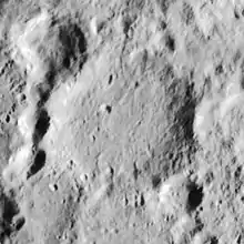 Street is a lunar impact crater located just to the south of the prominent ray crater Tycho. Street lies within the skirt of high-albedo ejecta from Tycho, and it is more heavily worn than its younger and larger neighbor. There are several smaller craters joined to the western rim, as well as two craters along the eastern rim. The floor is relatively smooth and flat, except for a small craterlet in the western half.[1] The crater is 58 kilometres (36 mi) in diameter and 1,500 metres (4,900 ft) in depth. It may be from the Pre-Imbrian period, which lasted from 4.55 to 3.85 billion years ago. It is named for the 17th-century English astronomer Thomas Street.[2][3]