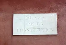 The liberal government of 1840 brought about the change of name of the Plaza de San Jaime to Plaza de la Constitución, taking advantage of the end of the rehabilitation works of the square and the Casa de la Ciudad. It bore this name until the beginning of the Second Republic in 1931, when it was changed to Plaza de la República, while in 1940 it was returned to its former name of Plaza de San Jaime.[66]