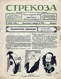 Strekoza (Russian: Стрекоза, lit.''Dragonfly'') was a Russian weekly magazine of humour and satire established in Saint Petersburg in 1875 by the publisher German Kornfeld. Its original editor-in-chief was Nikolai Bogdanov who left in 1879 to be succeeded by Ippolit Vasilevsky (1879-1905). In its heyday its circulation peaked at 9 thousand.[1]
