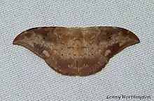 Adults are testaceous, the wings with the exterior lunulate and dentate line rather darker than the ground colour. It is most distinct on the forewings where it terminates in a black apical streak. The discal point is black.[3]