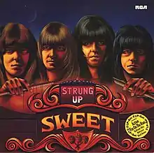 Strung Up is a 1975 double live/compilation album by the English glam rock band Sweet released by RCA Records in 1975. The first disc contains seven songs recorded live during a concert at the Rainbow Theatre, London on 21 December 1973. The second one contains ten selections of their songs recorded since 1973, including three songs that have not been released previously on any album, ("Burn On the Flame" and "Miss Demeanour") but only one ("I Wanna Be Committed") is brand new. The album also includes a unique mix of "Action" that comes to an abrupt end, and does not include the final decaying echo of the shorter single and longer Give Us a Wink album versions.
