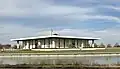 The museum is named after Leo Stuhr, a local farmer and politician whose family were among the area's pioneer settlers. He donated land, money, and numerous artifacts that served as the foundation of the museum. The building that houses the bulk of the museum's exhibits, the Stuhr Building, was designed by architect Edward Durell Stone and was built by Geer-Melkus Construction Co., Inc. It was listed on the National Register of Historic Places in 2015 after undergoing a $7.4 million restoration.[2][3]