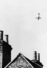 On 11 May StG 77 assisted Richthoffen's former command, now under Richard Putzier, against Dutch airfields.[19] StG 77 was involved in the Battle for the Hague later in the day, when Richthofen threw in half of his force to assist heard-pressed German paratroops.[20] I./StG 77 moved to Aachen on 11 May and supported the 6th Army's crossing of the Meuse. The following day it attacked targets in the Liège area. Stab. and I./StG 77 moved to Rocroi, near Charleville-Mézières to keep up with the advance. II./StG 77 operated in the Tirlemont area also on 13 May, losing two Ju 87s. First group attacked positions around Namur on 15 and 16 May.[21]