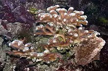 Stylophora is a genus of colonial stony corals in the family Pocilloporidae. They are commonly known as cat's paw corals or birdsnest corals. They are native to the Red Sea, the Indo-Pacific region and eastwards as far as the Pitcairn Islands.[2]