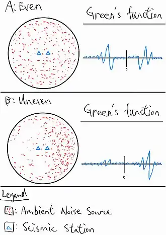 Figure 2: Resulting Green's functions in different distribution of ambient noise sources