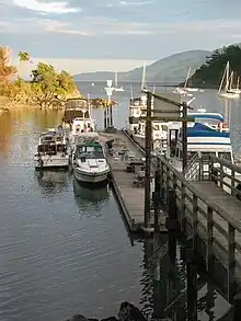 Fossil Bay is one of the most popular anchorages, particularly for small boats that prefer to tie up to one of two docks rather than anchor or pick up a mooring ring. Fossil Bay is an inlet that opens to the southeast.
