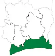 | Today part of | As Sud Dept: Abidjan Autonomous and Lagunes Districts; Gbôklé, Lôh-Djiboua, San-Pédro, and Sud-Comoé Regions As Sud-Est Dept: Abidjan Autonomous, Lagunes, and Zanzan Districts; Gbôklé, Indénié-Djuablin, Lôh-Djiboua, San-Pédro, and Sud-Comoé Regions |