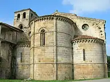 In 1120 Suero made several deals with his relatives to gain control over their shares of the monastery of Cornellana, thus gaining sole proprietorship.[23] That year he made two donations to the monastery (22 January and 8 November). At Lugo on 7 March 1122, in the presence of the royal court, Suero and Enderquina donated Cornellana to the Abbey of Cluny.[24] Along with Cornellana itself they donated a block of properties "acquired by inheritance or by [their] own efforts" (de parentibus nostris vel de nostris ganantiis, "from our parents and from our purchases").[25] All the lands Cluny received amounted to "fifty-six different properties scattered across a vast area, as well as four monasteria [monastic centres], six churches and a castle (castellum)."[11] Suero had received one church (ecclesiam) and three or four monasteries (monasteria) from Queen Urraca "by charter" (per incartationes), another three and a half churches plus a portion (portionem) in another he had inherited (called hereditates) or purchased (called gananciales). These were all proprietary churches he owned, but the difference between ecclesiae and monasteria is not clear.[25] Cluny also received estates (villas) and male and female slaves (servos et ancillas). The donation was confirmed by Urraca, Alfonso VII, the queen's daughter Sancha Raimúdez, Diego Gelmírez, Pelayo of Oviedo, Diego of León, Peter III of Lugo, the prior of the monastery of San Zoilo de Carrión, and a "curious mixture of [lay] Galicians and Asturians".[26] The charter was drawn up by a canon of the Cathedral of León who had probably followed the royal court to Lugo.