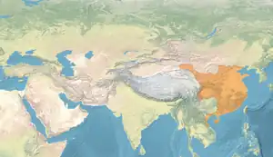The Yang of Hongnong, Jia of Hedong, Xiang of Henei, and Wang of Taiyuan from the Tang dynasty were later claimed as ancestors by Song dynasty lineages.[20] Information about these major political events in China were somehow filtered west and reached the Byzantine Empire, the continuation of the Roman Empire in the east. From Turkic peoples of Central Asia the Eastern Romans derived a new name for China after the older Sinae and Serica: Taugast (Old Turkic: Tabghach), during its Northern Wei (386–535) period.[21] The 7th-century Byzantine historian Theophylact Simocatta wrote a generally accurate depiction of the reunification of China by Emperor Wen of the Sui dynasty, with the conquest of the rival Chen dynasty in southern China. Simocatta correctly placed these events within the reign period of Byzantine ruler Maurice.[22] Simocatta also provided cursory information about the geography of China, its division by the Yangzi River and its capital Khubdan (from Old Turkic Khumdan, i.e. Chang'an) along with its customs and culture, deeming its people "idolatrous" but wise in governance.[22] He noted that the ruler was named "Taisson", which he claimed meant "Son of God", perhaps Chinese Tianzi (Son of Heaven) or even the name of the contemporary ruler Emperor Taizong of Tang.[23]