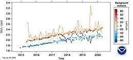 Based on the first high frequency, high precision, in situ atmospheric and archived air measurements, sulfuryl fluoride has an atmospheric lifetime of 30–40 years,[8] much longer than the 5 years earlier estimated.[25]
