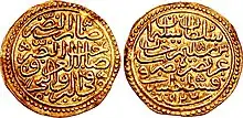 The sultani (Ottoman Turkish: سلطاني) was an Ottoman gold coin. It was first minted in 1477–8 during the reign of Mehmed II (r. 1451–1481), following the Venetian ducat standard,[1] weighing about 3.45 grams (0.111 ozt). The sultani is the classic Ottoman gold coin also known generically as altın (آلتون, "gold").