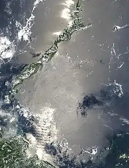 ![]() Satellite image from NASA showing the internal waves formed in the Sulu Sea | |