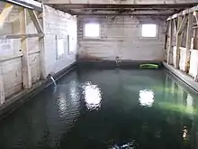 The Summer Lake Hot Springs bathhouse was built in 1928. It is a rustic wood frame structure covered with corrugated tin panels. Inside the building there is a 15-by-30-foot (4.6 m × 9.1 m) bathing pool along with men's and women's dressing rooms.[1][8][18][21]